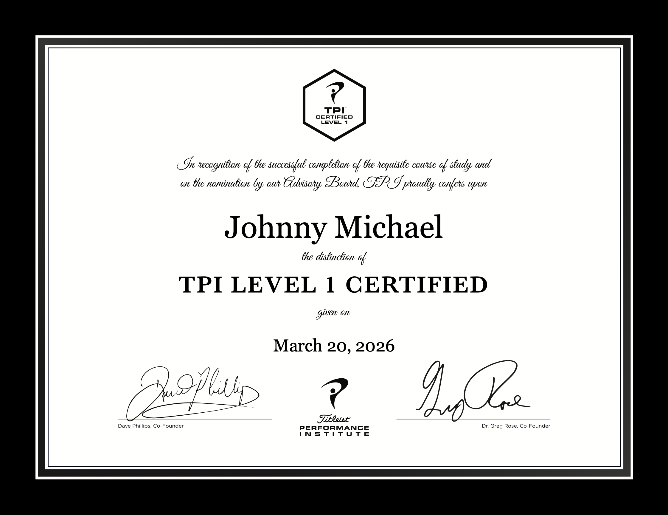 As of March 2026, I'm officially a Titleist Performance Institute certified professional — and now listed on the TPI expert database.